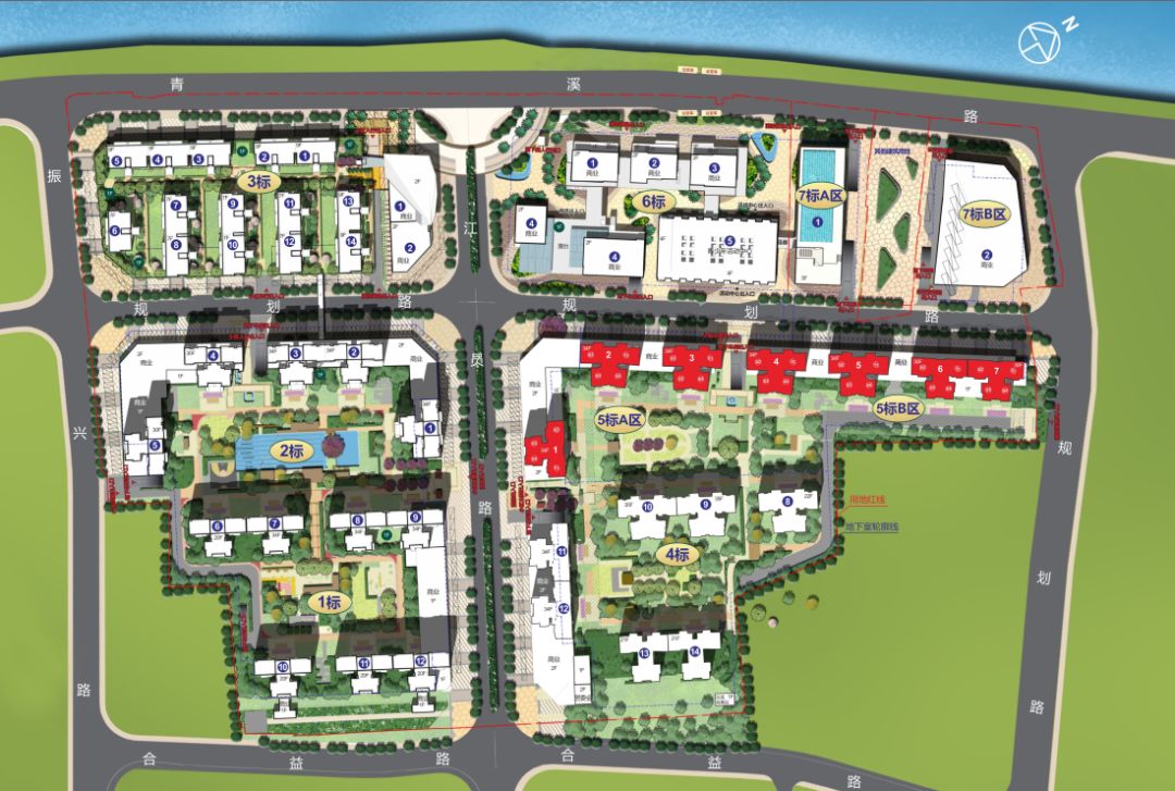 在售户型:五标段 1/2/3 栋,108 ㎡三房、120 ㎡四房,135 ㎡四房